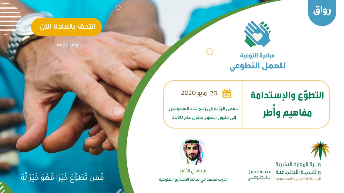 كُن جزءًا من رؤية المملكة 2030 🇸🇦 وساهم معنا في مشروع #مبادرة_التوعية_للعمل_التطوعي✋على رواق بالتعاون مع
