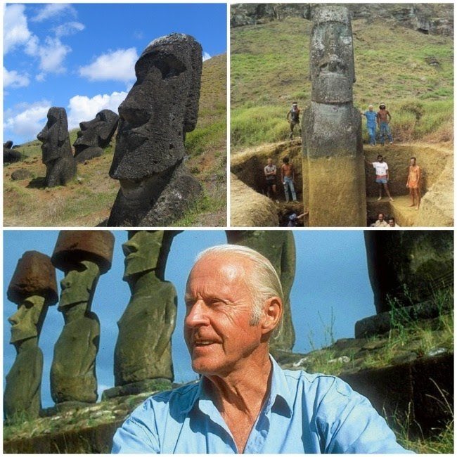 (أُطلق هذا الاسم على تلك التماثيل) لديها بالفعل أبدان قد يصل ارتفاع بعضها إلى 20 قدماً، ومع ذلك فإن أكبر اكتشاف هو تجربته التي أثبتت أن التماثيل مصنوعة من بعض الأدوات التي يُرجح أنها كانت شعبية بين الناس في ذلك الوقت.