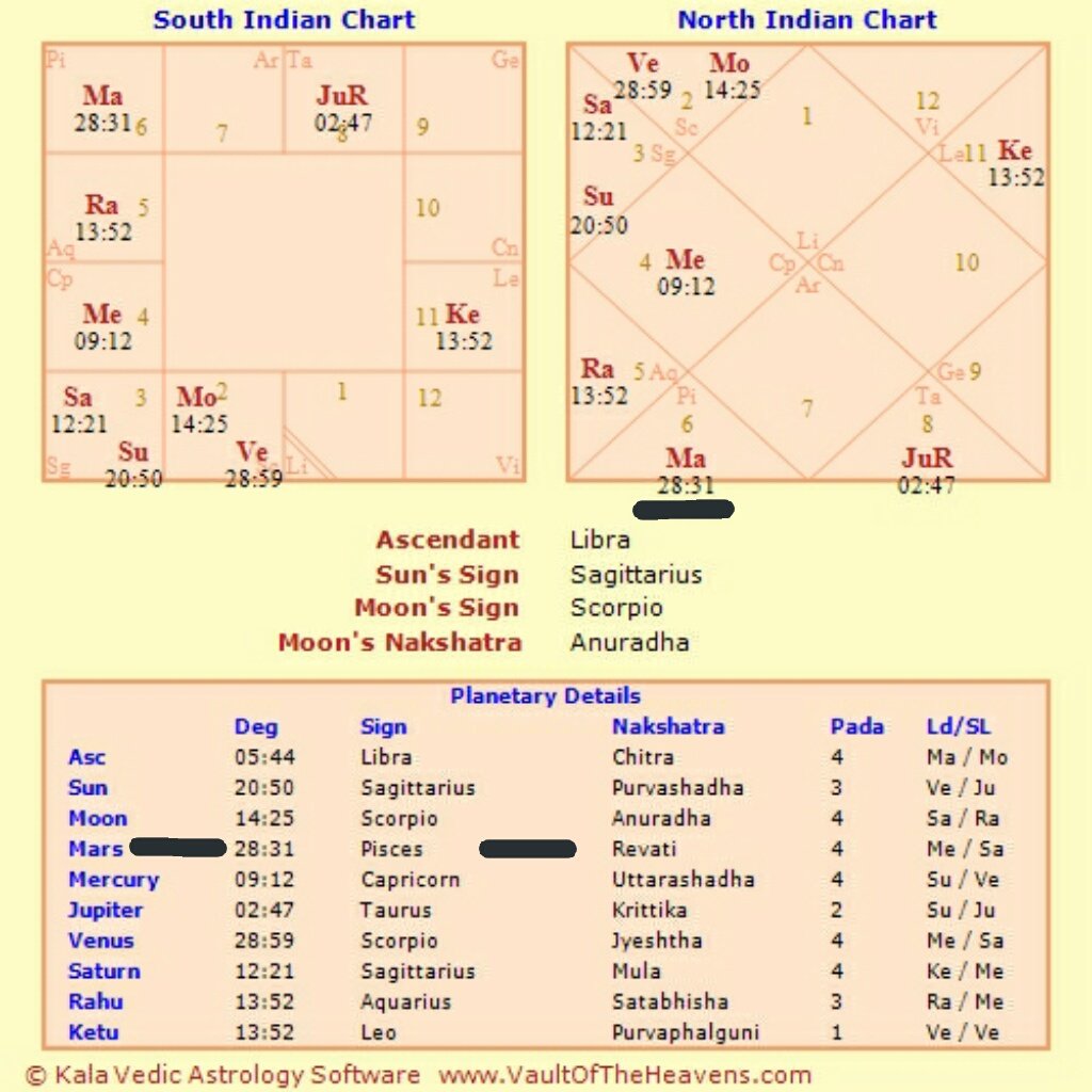 يعني مثلا قد تجد عندك المريخ في منزلة قمرية اسمها Ashwini بينما في خريطة شخص آخر المريخ في منزلة قمرية اسمها Baharani مثلا.. يعني كل خريطة مختلفة عن الثانية