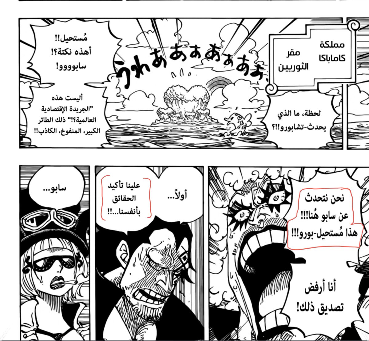 والذي جعل الأمر كفاجعه للثوار ودراغون هي ان حكومة العالم جعلت الأمر كأن سابو أختطف حاكم ارباستا و ربما أغتال من قبل الثوار وهذا ليس مبدأ الثوار وان البحرية ستأخذ الثأر