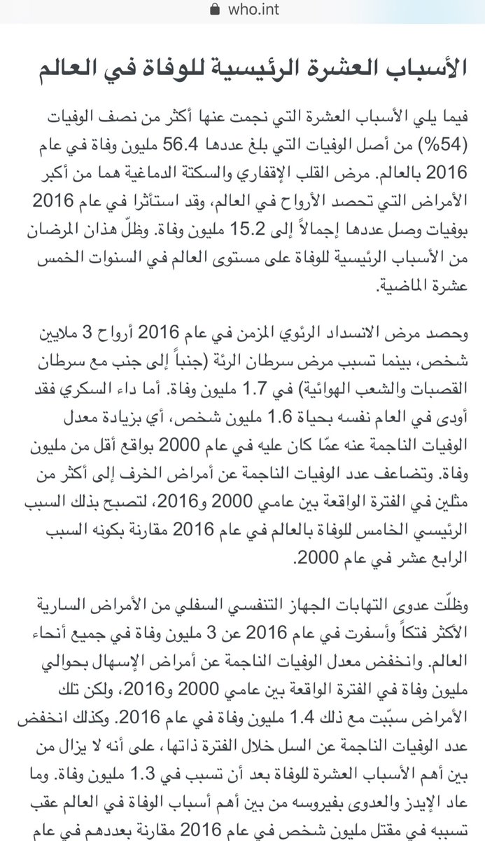 طيب عندي تساؤل. ٥٦ مليون وفاة سنويا، كم شخص منهم احتاج مستشفى وعناية؟ طيب الثلاثة مليون امراض جهاز تنفسي.كم شخص منهم احتاج رعاية وعناية؟هل عجزت المستشفيات عن استقبالهم؟ هل رميناهم في الشوارع وما عالجناهم؟
