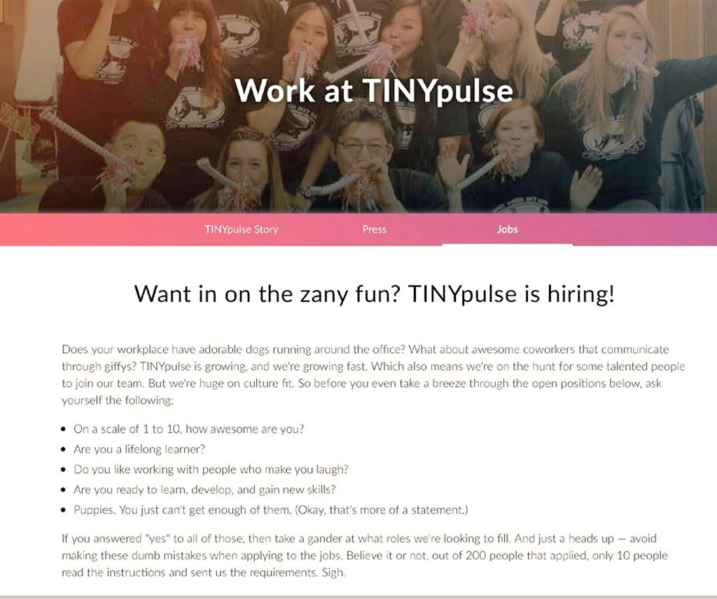 نشرت مجموعة فيديوهات لجعل علامتهم التجارية مبتكرة مثل منتجاتهم و بنبرة لطيفة تردد قيم الشركة ليسبح المرشح في بيئتهم المبدعة.