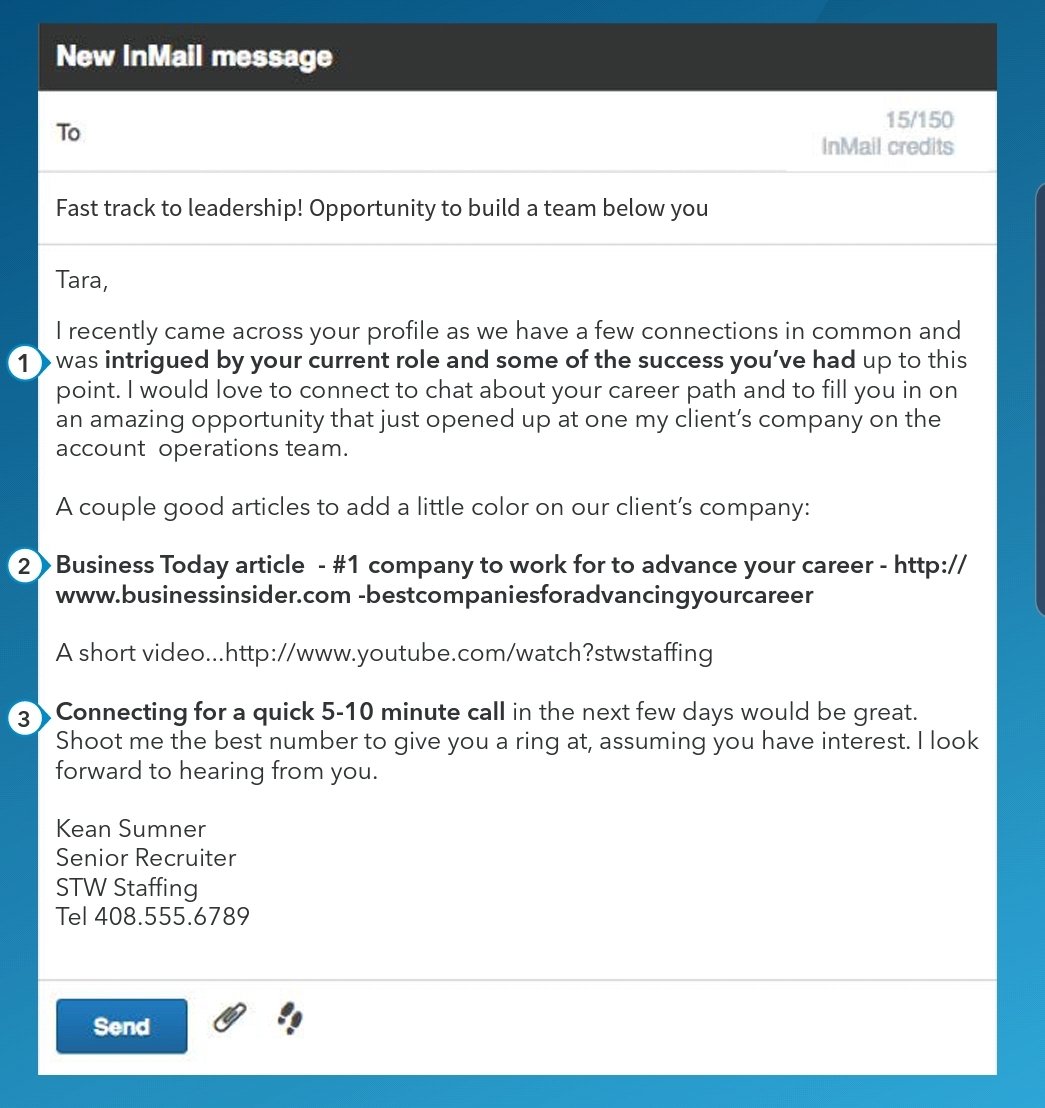 ولمساعدتك كمسؤول توظيف بالاستفادة الفعالة من هذه الخدمة احرص على إضافة طابع شخصي على رسالتك مما يساهم في زيادة الفرصة ببناء علاقة مهنية مع المرشح المُستهدف.