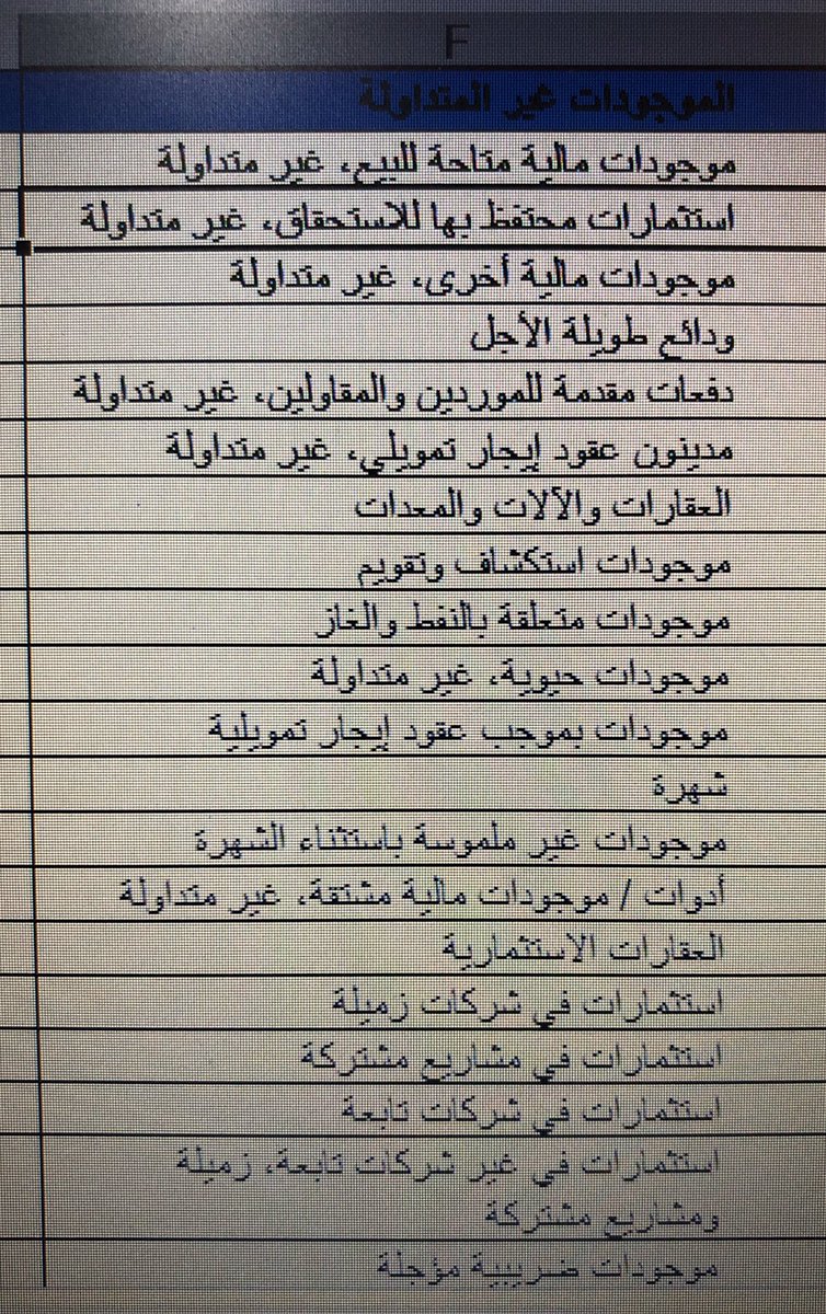 •يكون الاصل النقدي وشبة النقدي متداول مالم يكن هناك قيود على استخدامه او استبداله لتسوية التزام لمدة ١٢ شهر على الاقل.
