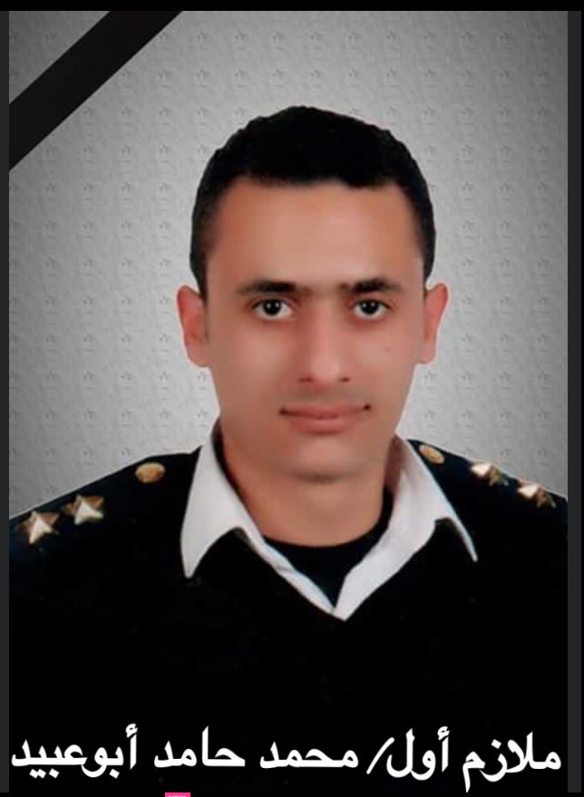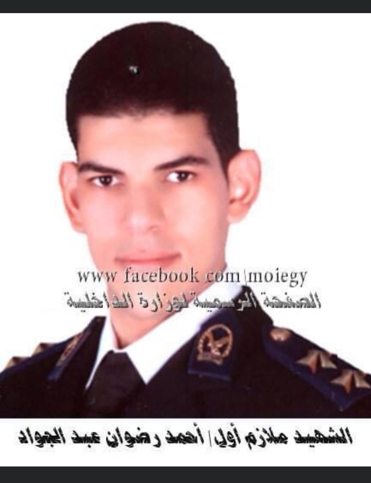 الضابط بقطاع الأمن المركزي بشمال سيناء واللي إستشهد إثر إنقلاب مدرعة أثناء تفقده الحالة الأمنية بدائرة قسم شرطة ثالث العريش بتاريخ 25 نوفمبر 2013