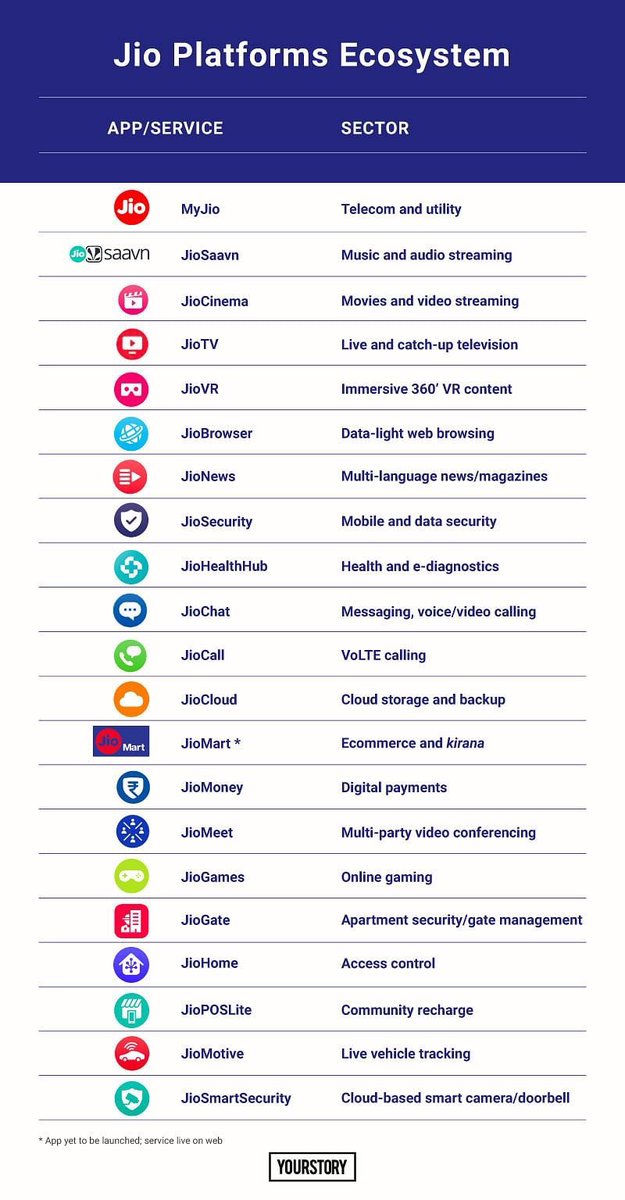 استثمرت شركات كبيرة في @reliancejio الهندية خلال الأسابيع الماضية، فما هي المنصات/الخدمات التي تقدمها الشركة حالياً في السوق الهندي؟