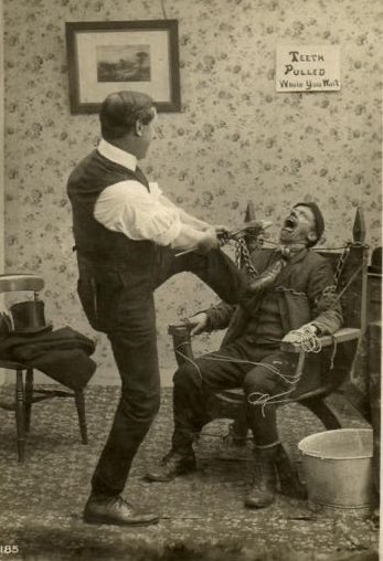 وبعد ما يخلص الدكتور من حفر السن ما راح يحط لك حشوه نفس الآن لا لا ، يستخدمون مواد مختلفة لحشو الفجوات وخاصةً الفلين المستخدم في إغلاق زجاجات الخمور والرقاقات المعدنية، والصمغ 🙂.