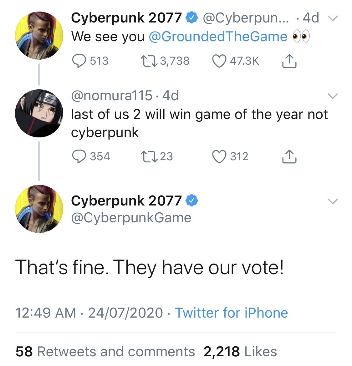 - حساب اللعبة الرسمي @CyberpunkGame يصل الى مليون متابع 🎉👏🏻