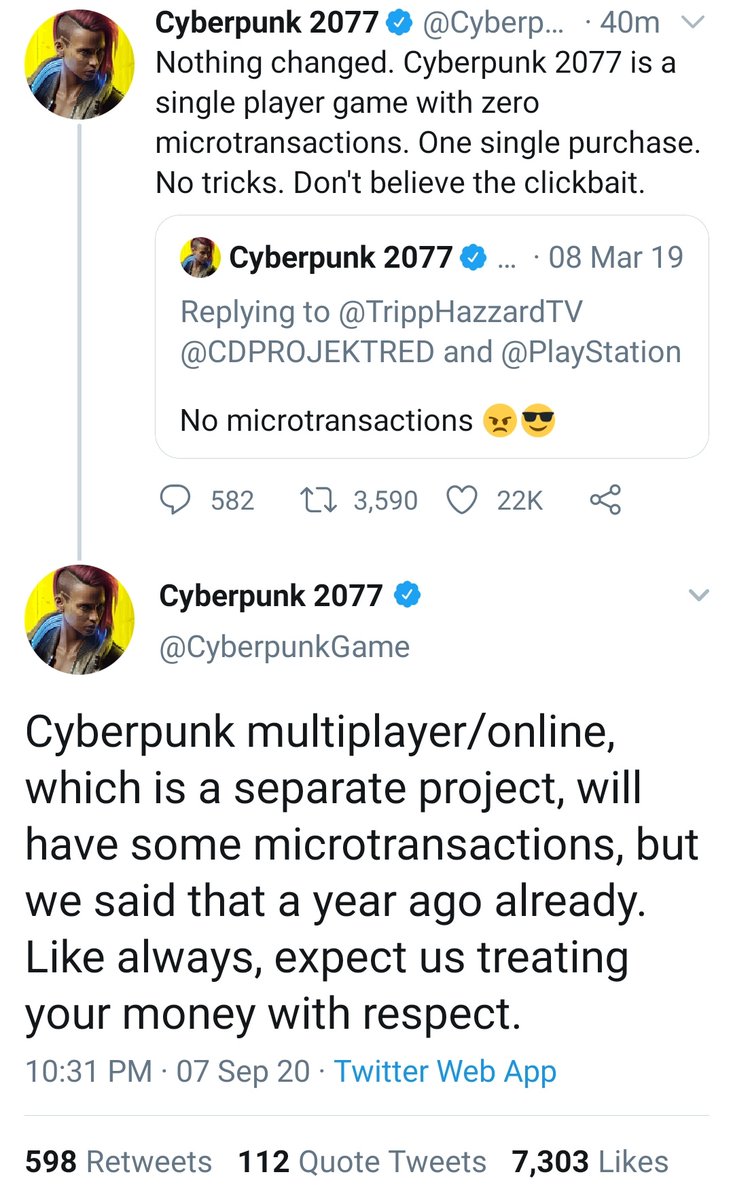 - متحدث بإسم استديو @CDPROJEKTRED ينفي إشاعات قدوم لعبة "Cyberpunk 2077" على Xbox Game Pass