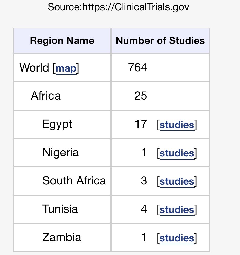 المراكز البحثية في مصر تجري اكبر عدد من التجارب السريرية لعلاجات محتملة لفيروس "كوفيد-19" في الشرق الأوسط وأفريقيا ... طبقا ل clinicaltrials.gov