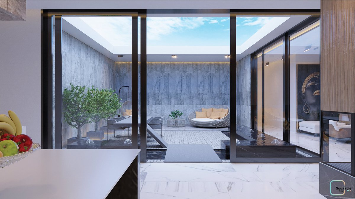 سوف أسرد لكم في هذا الثريد تصميم فيلا في مدينة الرياض،لصالة المعيشة والفناء الخارجي و مطبخ الخدمة مع ملحقاته ، جمال الإطلالة على الفناء الداخلي تجعلنا نعيد النظر في التصاميم الداخلية، ودراسة الإنارة الطبيعية.