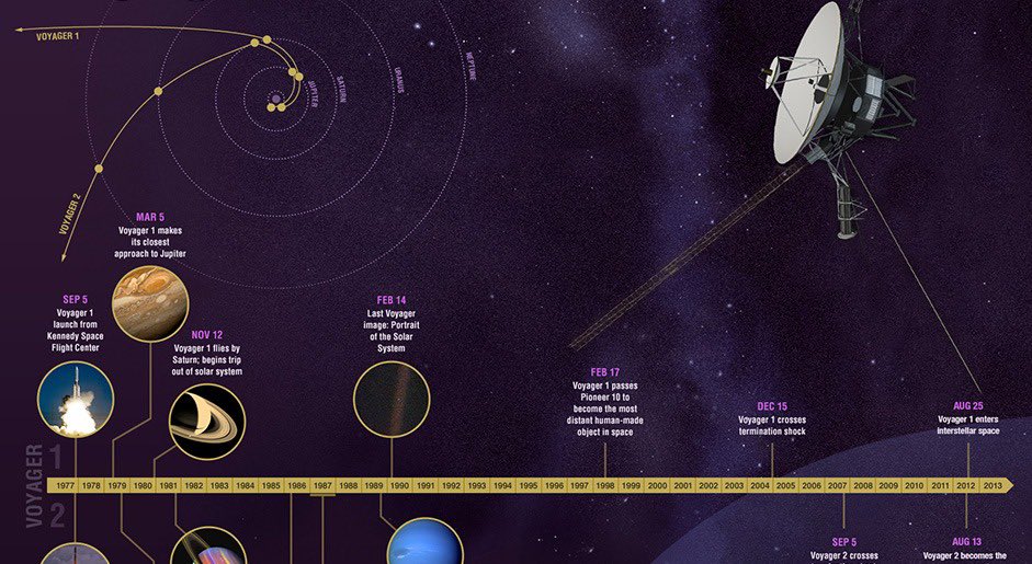 اليوم تقف المركبتان على بعد مليارات من الكيلو مترات خارج نظامنا الشمسي بين تلك المادة المظلمة التي تملأ الكون، بعد أن عبر كلا منهما أجرام وكواكب وأقمار وأمدوا مراكز التحكم هنا على الأرض بآلاف القياسات والصور، وتغيرت معهما كثير من المفاهيم حول الكون.