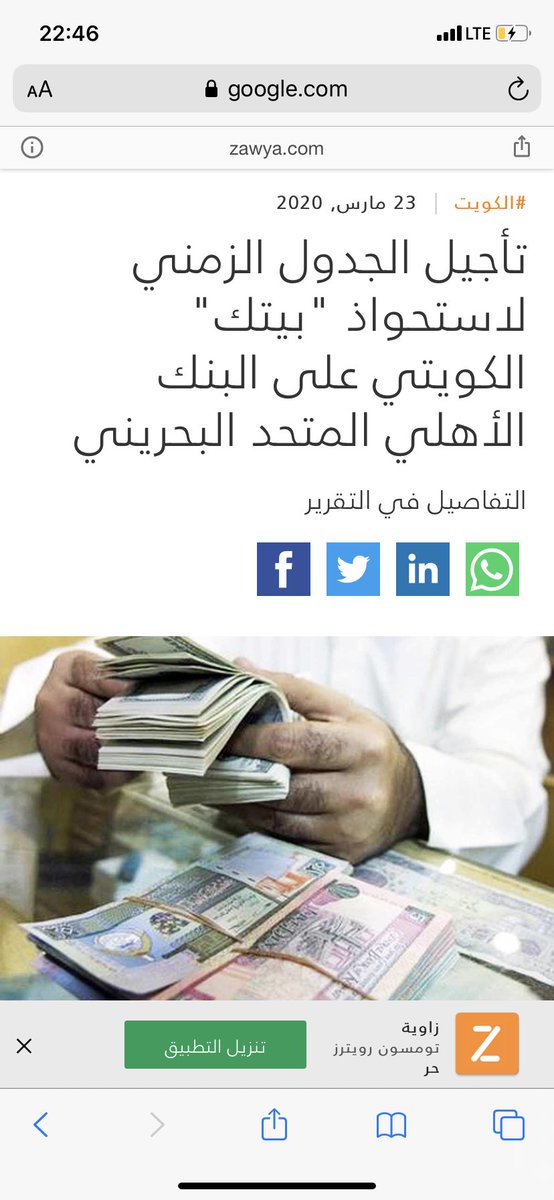 كإجراء اضافي أعلنت ادارة #بيت_التمويل_الكويتي بتأجيل الاندماج مع #البنك_الاهلي_المتحد الى ديسمبر ٢٠٢٠ بسبب تطورات ازمة #كورونا 👇🏻و ذلك في شهر مارس الماضي!