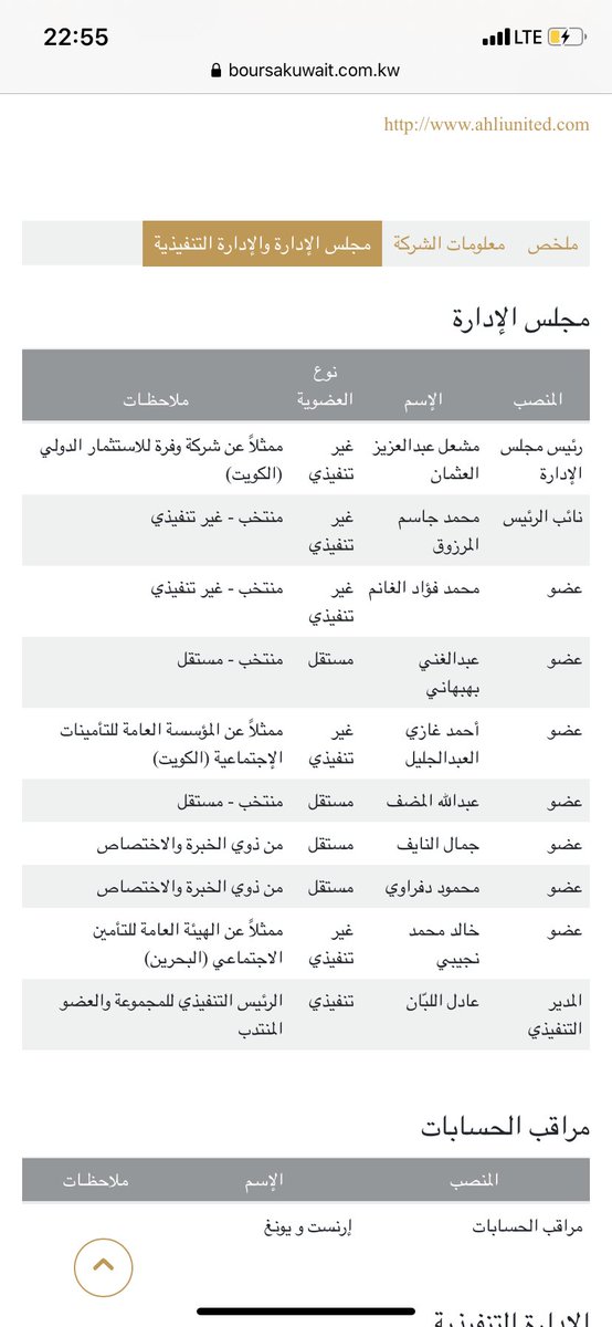 تسيطر مؤسسة التأمينات الكويتية على رئاسة مجلس ادارة #البنك_الأهلي_المتحد لعدة سنوات و لها عضو مجلس ادارة آخر يمثلها و يرعى مصالحها، و كما وضحنا، وزير المالية هو الوزير المختص بهم 👇🏻