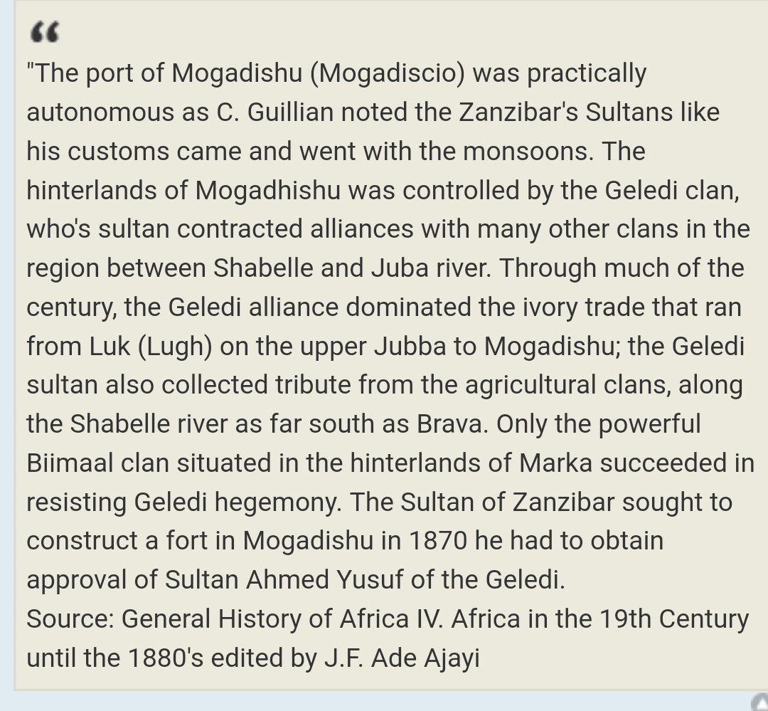 وهذه وثيقة هامة من كتاب تاريخ أفريقيا يتحدث فيه عن إستئذان سلطان برغش من سلطان غلدي للبناء في #مقديشو فما هو نوع الحكم الذي يبدأ بإستئذان؟ سلطنة غلدي كان لها القوة لكنها كانت في زمن سقوطها