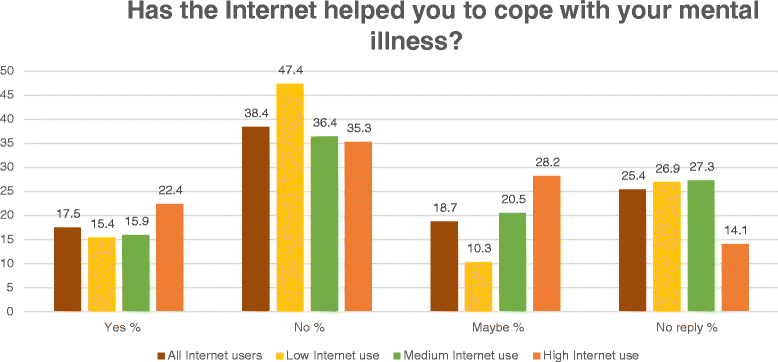 يعتقد 36.2٪ أن الإنترنت قد ساعدتهم أو ربما ساعدتهم في التعامل مع الاضطراب النفسي الخاص بهم ، بينما ذكر 38.4٪ عكس ذلك #دراسات_نفسيه