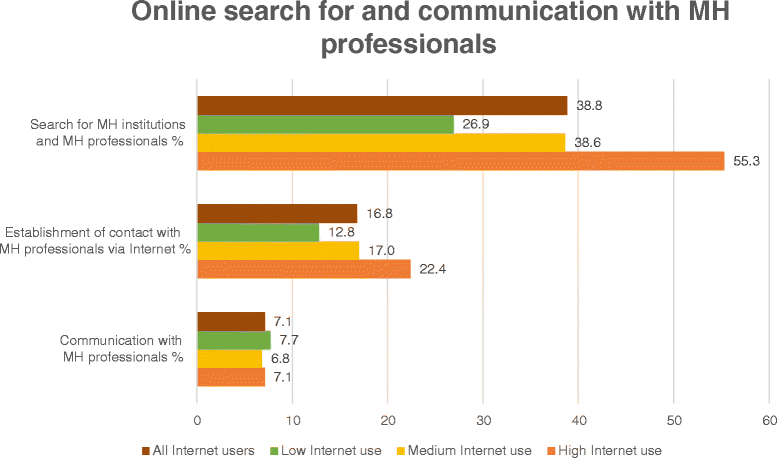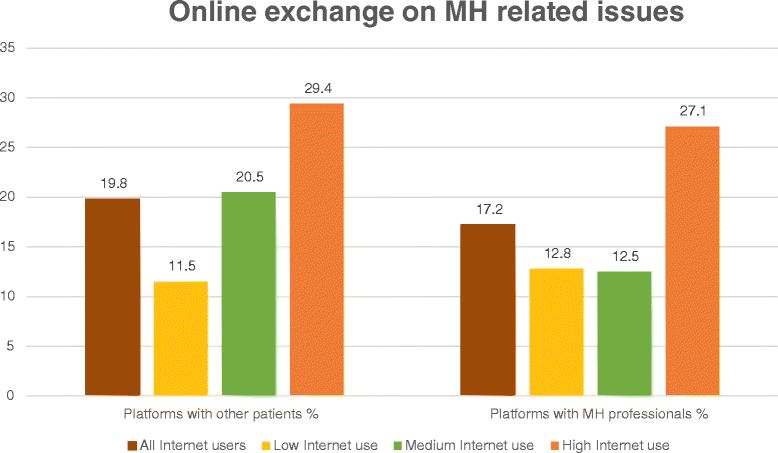 شملت المحتويات التي تم الوصول إليها من قبل المرضى: معلومات عن الاضطرابات النفسية (57.8٪) ، معلومات عن الأدوية (43.7٪) ، البحث عن خدمات الصحة العقلية (38.8٪) ، منصات مع مرضى آخرين (19.8٪) ومنصات مع أخصائيي الصحة العقلية ( 17.2٪) #دراسات_نفسيه