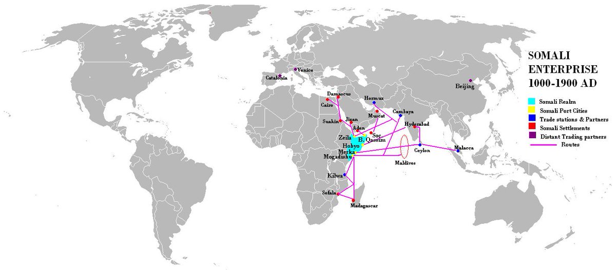 بينما كان الشرق يحترق بالمغول والحروب الصليبية كانت الزهور تنبت في حدائق نهر شبيلي ومدن كـ Qalaafe وحتى المحيط الهندي في مارق Mareeg ,وإلى كسمايو الوادعة ووصلت دولتهم الى Sofala الموزمبيقية والتي كانت تملكها #سلطنة_أجوران وفيها مناجم الذهب.