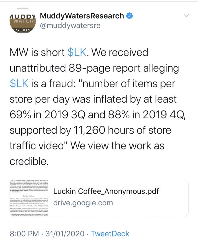 هيه هو نفسه صاحب شركة muddy waters ونشر تقرير وفجر مفاجأة من العيار الثقيل!