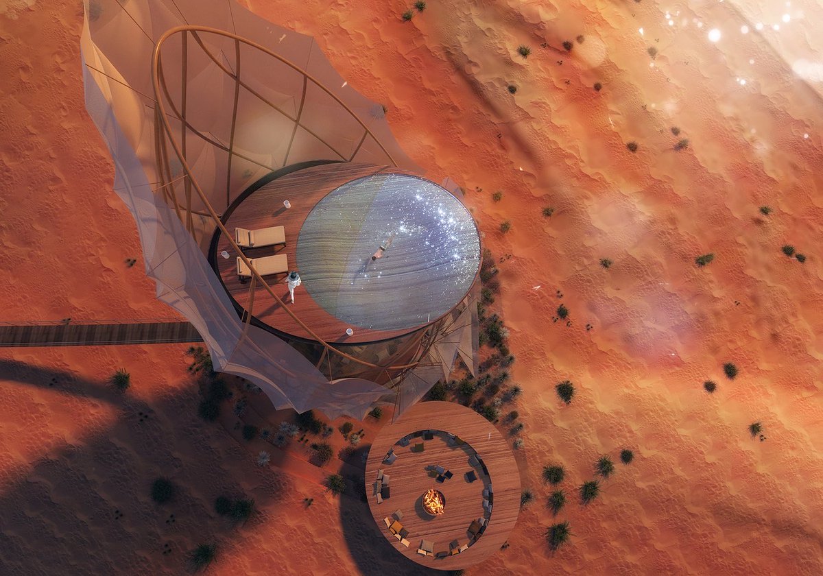 مقترح | "منتجع ملاذ الصحراوي" سيقام على كثبان #الربع_الخالي، في إحدى أكثر المناطق غير المكتشفة في العالم، وسيضم أكثر من 60 وحدة فندقية فاخرة ومسابح مفتوحة وجلسات شواء وحدائق معلقة