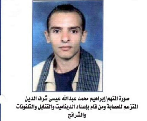 تمكنت قوة مكافحة الإرهاب في 25 مايو 2005م من القبض على المدعو "إبراهيم محمد عبدالله عيسى شرف الدين" المتزعم للعصابة ومن قام بإعداد الديناميت والقنابل والتلفونات والشرائح مع أثنين من مساعديه الذين لقيا مصرعهما أثناء مواجهتهم للأمن.