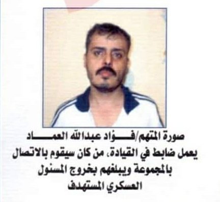 من ضمن الفارين من وجه العدالة، في العام 2005م، المدعو "فؤاد عبدالله العماد"، الذي كان يعمل ضابطاً في القيادة، ومن كان يقوم بالإتصال بالمجموعة الإرهابية، ويبلغهم بخروج المسؤول العسكري المستهدف.