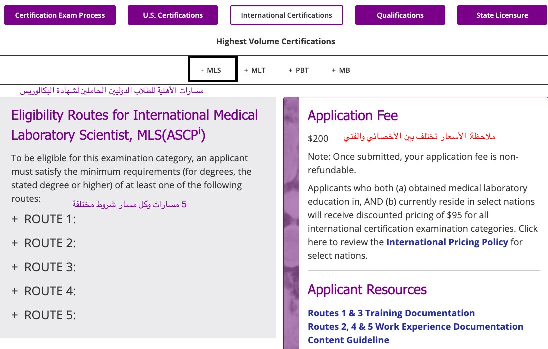 2⃣المسار الثاني: بكالوريس معتمد في علوم المختبرات الطبية بالإضافة إلى ثلاث سنوات خبرة معتمدة تشمل جميع أقسام المختبر الأساسية ذكرت أعلاه.