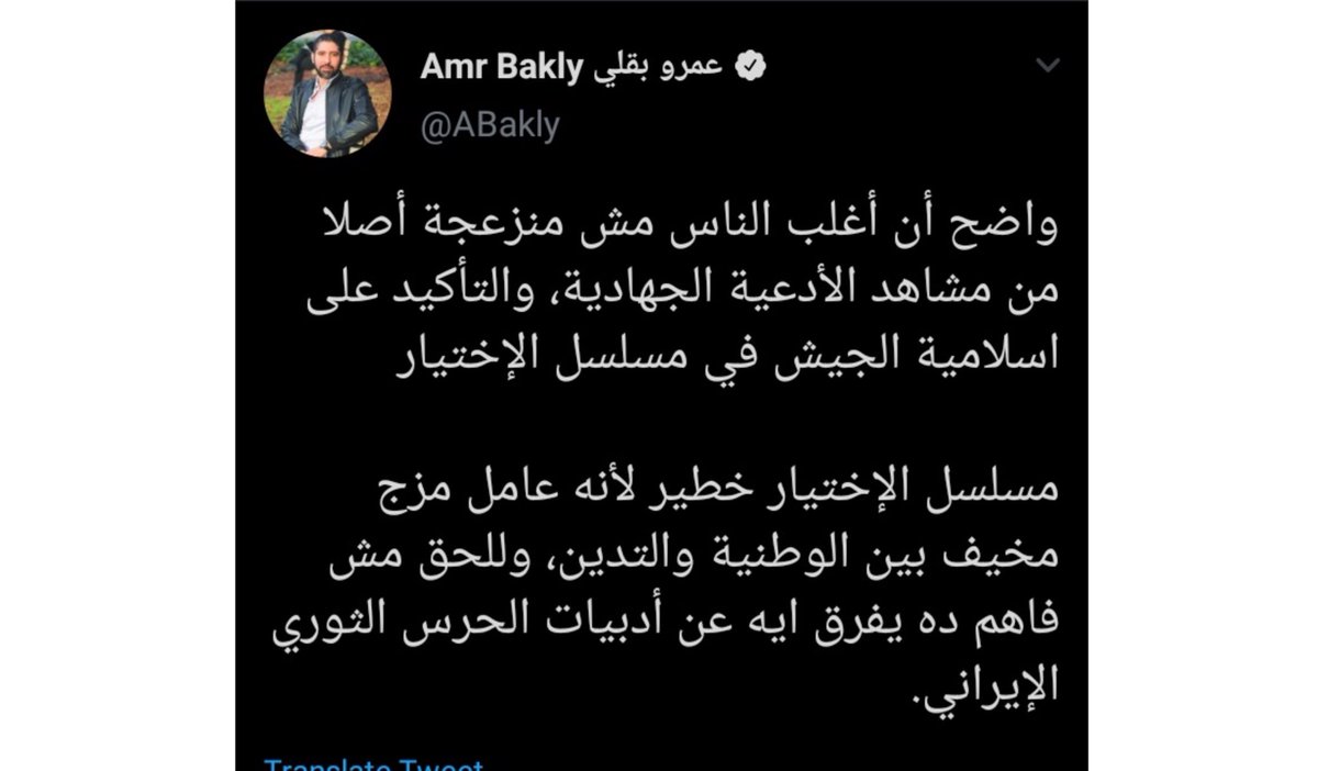 فيه حالة من التململ عند بعض الناس مما يبدو انه خطاب ديني على لسان بطل المسلسل احمد منسي وهل ده تنافس بين الدولة والاسلاميين على استغلال الدين،والبعض حاول يصطاد في الميه العكرة ويسوق ان الجيش له طابع ديني(١)