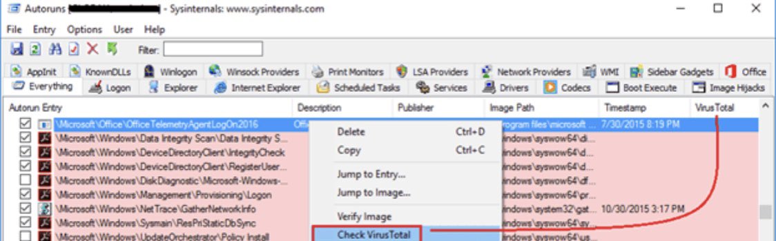 ١/ اداة autoruns.exe من @Microsoft (كوماند لاين او GUI) ممكن تساعدك على الاطلاع على جميع البرامج الي تشتغل في النظام و أيضا تعطيك ميزة مقارنة هذي ال processes مع @virustotal