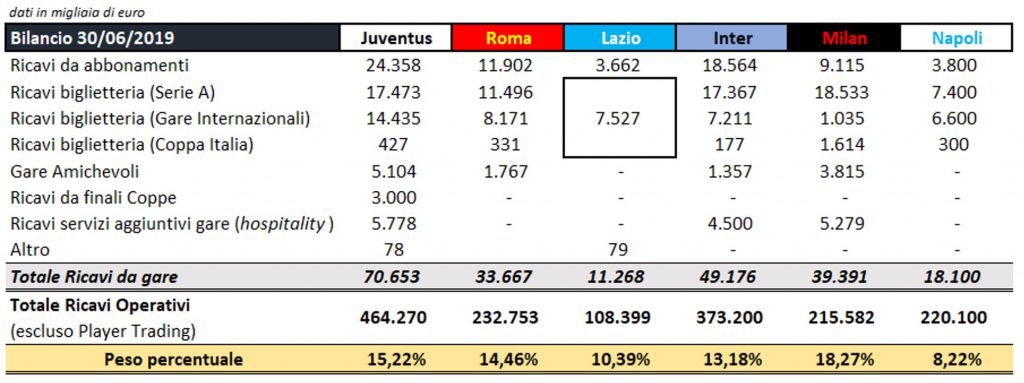 اما بالنسبة لليوفنتوس و خسائر إغلاق الاليانز ستاديوم كل هذه الفترة و اللعب بأبواب مغلقة لفترة لا تقل عن ٨ اشهر كما هو متوقع فالخسارة تقدر ب٧٠.٦ م يورو استنادا على عائدات الملعب للسنة المالية الماضية ، اَي ما يشكل ١٥٪ من الميزانية العمومية