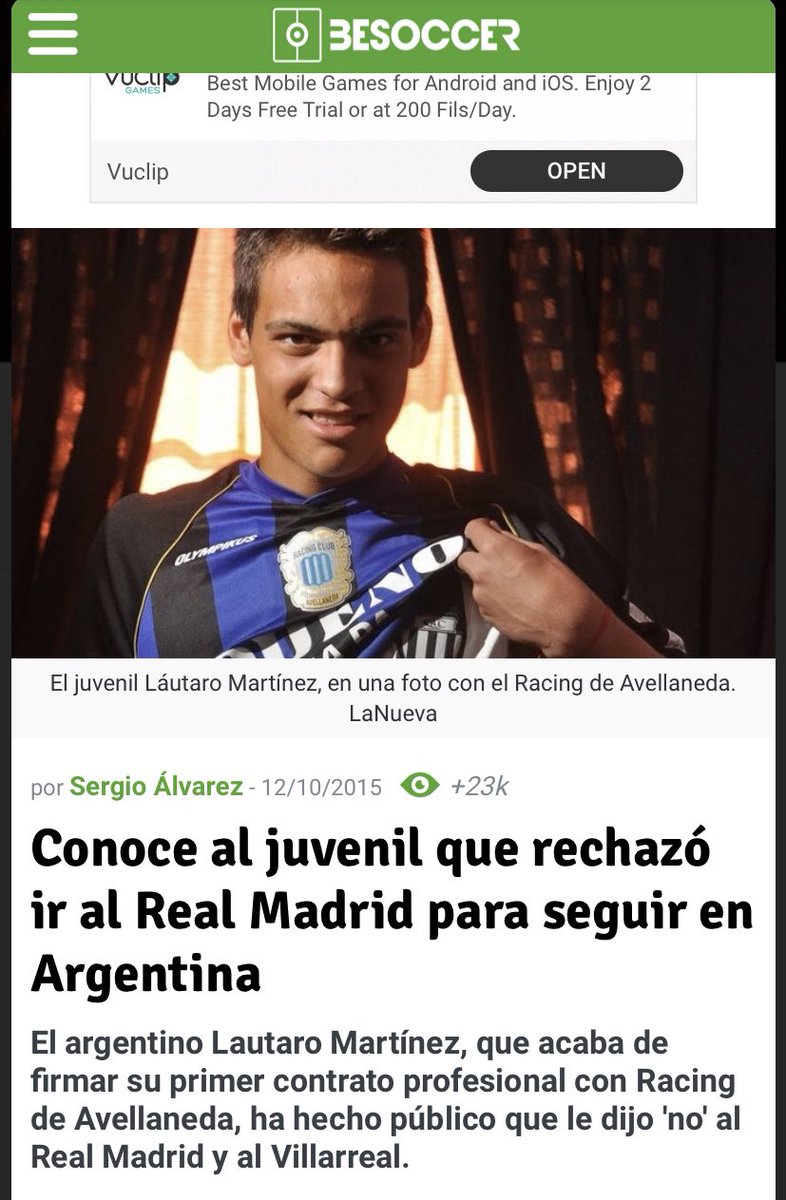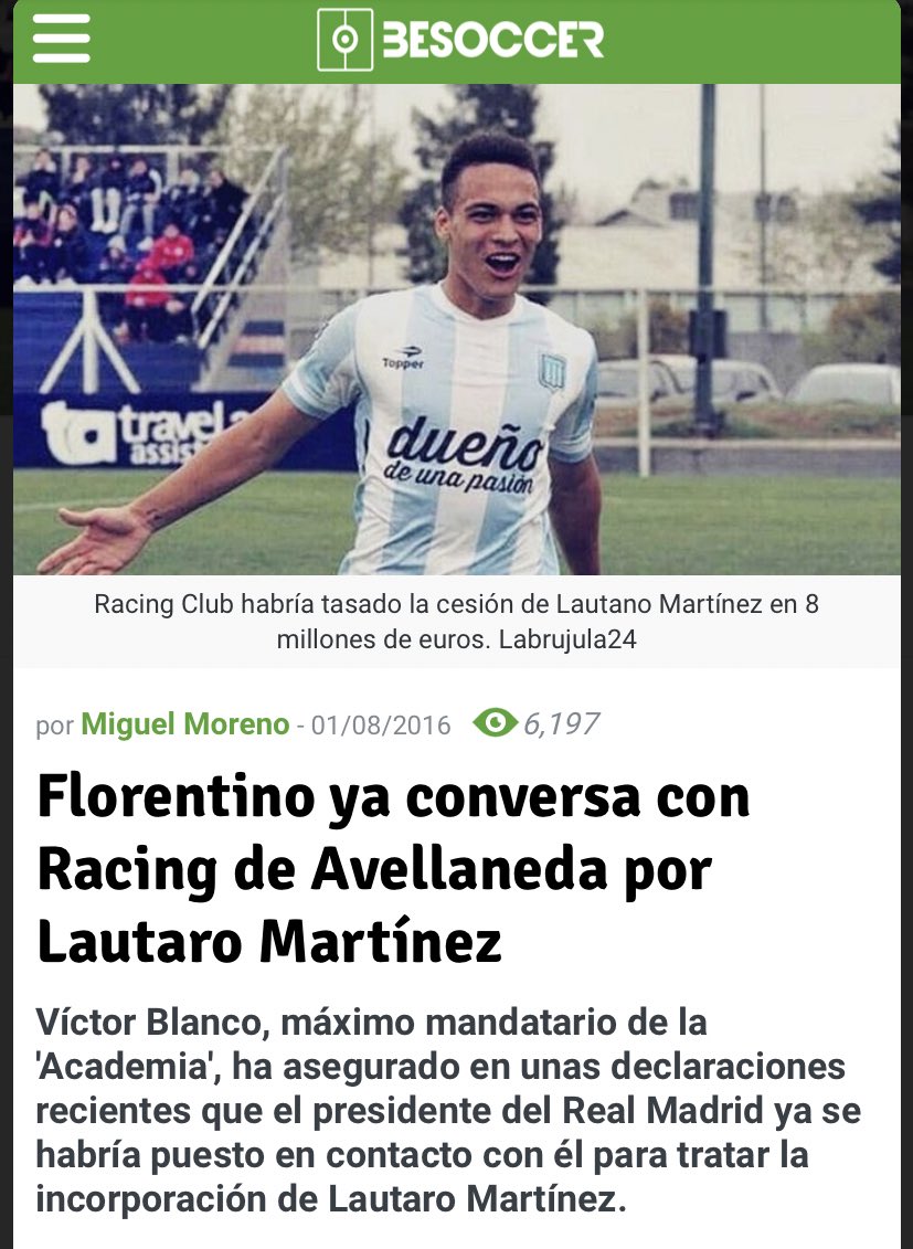 - ابداع لاوتارو (18عام) المتواصل لفت انتباه فياريال وريال مدريد الذي تواصل معه أكثر من مرة والبداية بتقديم عرض اعارة لمدة عام في مدريد مع خيار الشراء ،