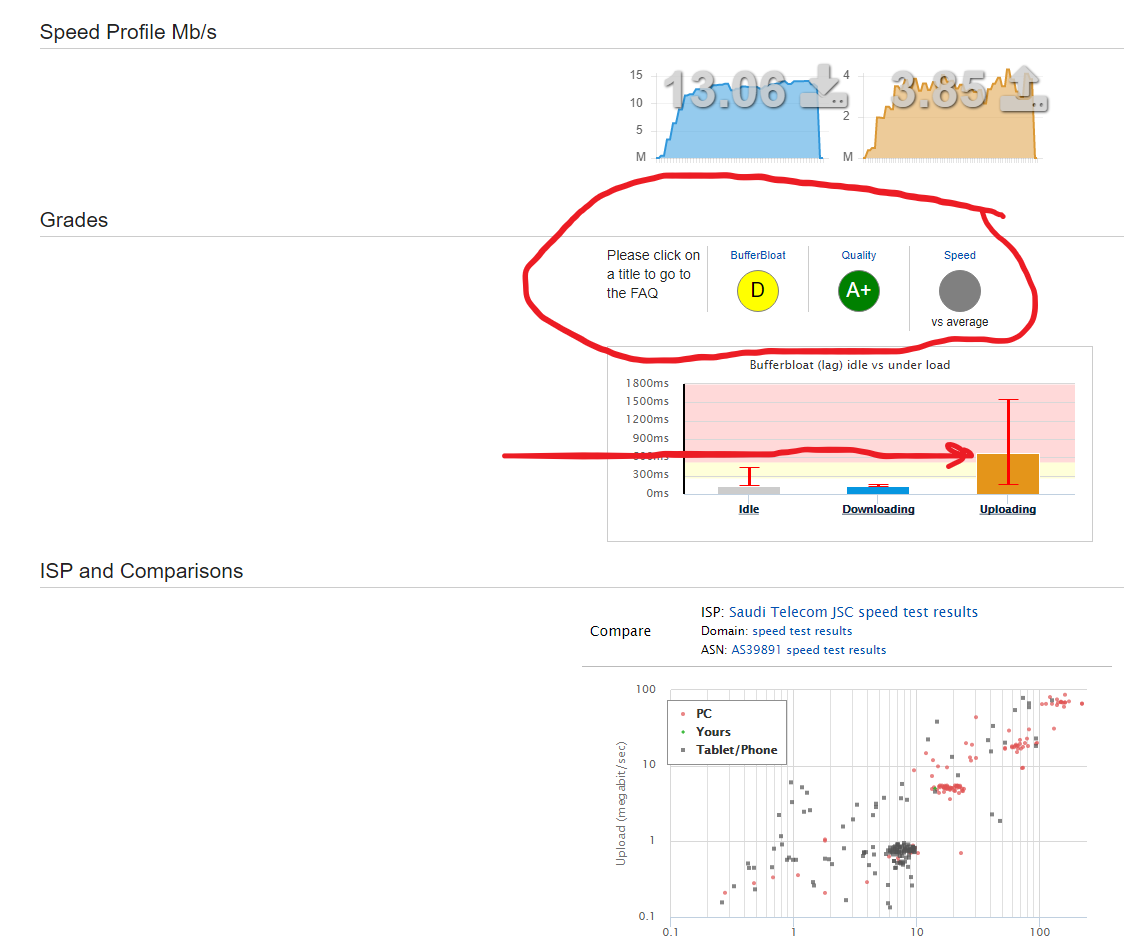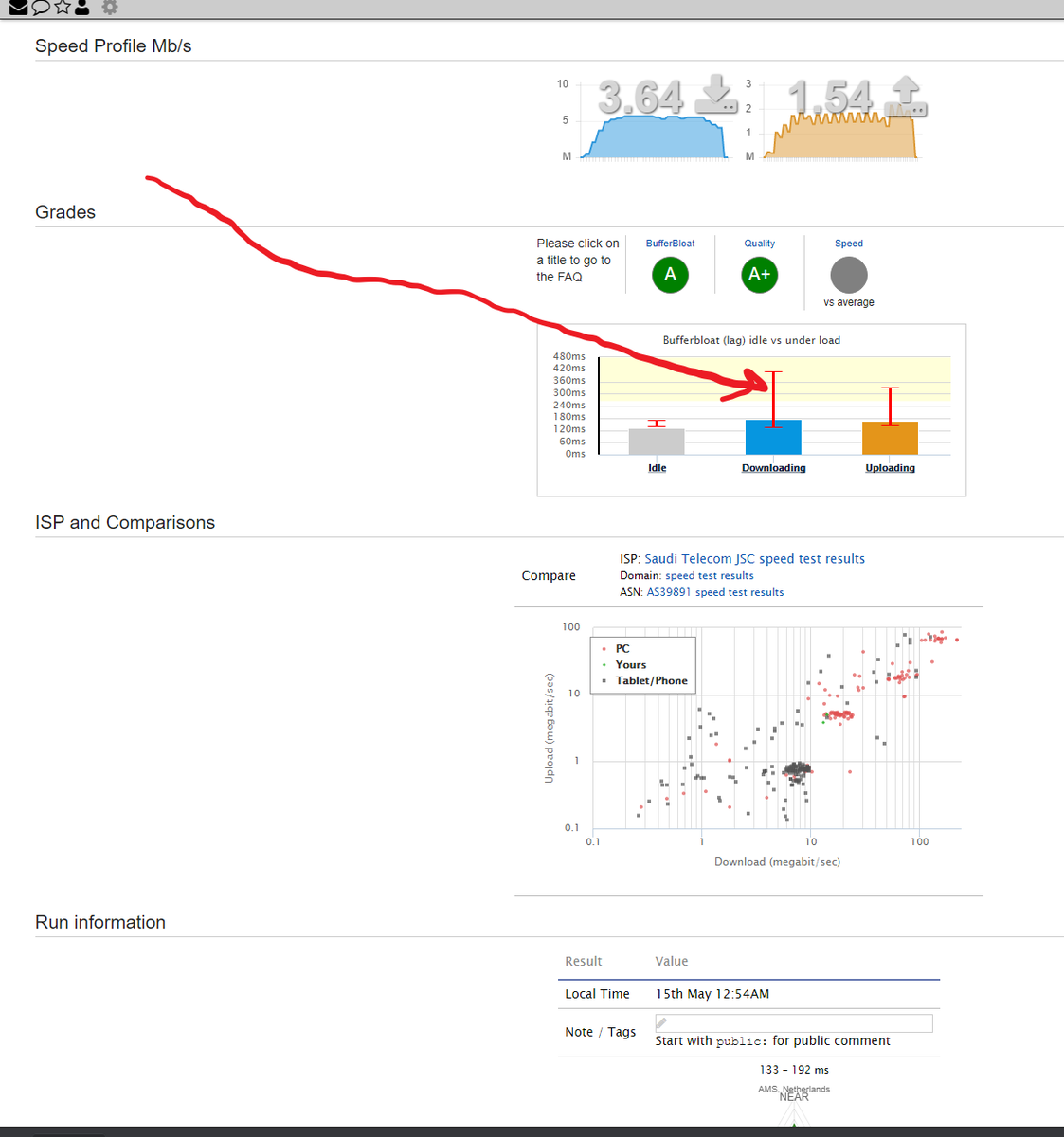 الاتصال المتذبذب زي حقين 4G او الاستخدام العالي في السرعات الانترنت النت العاليه خصوصا الي اهله يستخدمون معه في نفس الانترنت , كيف اعرف اني اعاني من هالمشكلة طيب ؟ بحط موقع يقيس لك BufferBloat lag