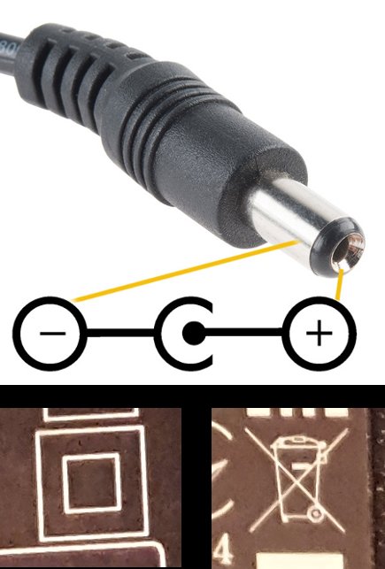 ٤- من المهم معرفة بعض العلامات للاستخدام الامثل ،(المنزل) تعني ان الجهاز للاستخدام الداخلي، ( المربعين) الجهاز معزول بطبقتين _سعره اعلى (صندوق المخلفات بعلامة X ) اي انه لايرمى مع المخلفات العادية ( +،-) التعريف بالاقطاب للمخرج ،،