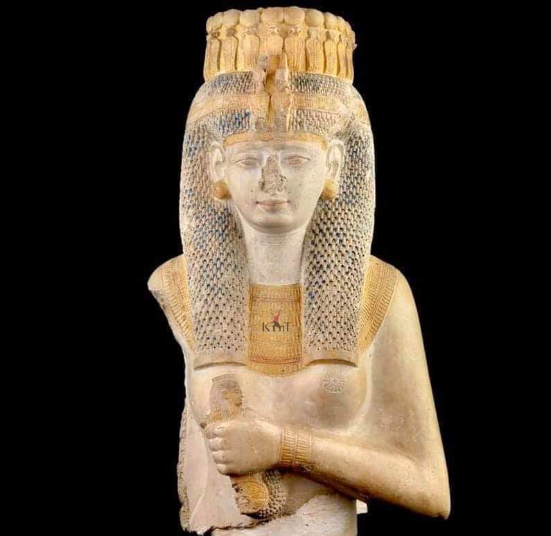 7- وتم الإعلان عن المكان بأنه منطقة أثرية ويتكون تمثال الأميرة من الحجر الجيري وعثر على تمثال الأميرة لم يوجد الجزء السفلي منها بداية من الساقين وحتى القدمين وكانت القعدة كذلك مفتتة لا تحمل جسدها فتم عمل قاعدة جديدة لها من خلال الترميم وكذلك تكملة الجزء المختفي 👇.