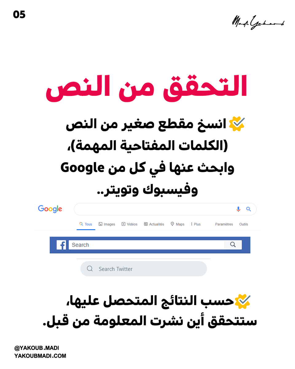 أشارك معكم بعض الخطوات والأدوات المفيدة في اكتشاف صحة أي خبر أو صورة او فيديو قبل أن نساهم في نشره ونكون سببا في نشر اشاعات أو معلومات مغلوطة✅
