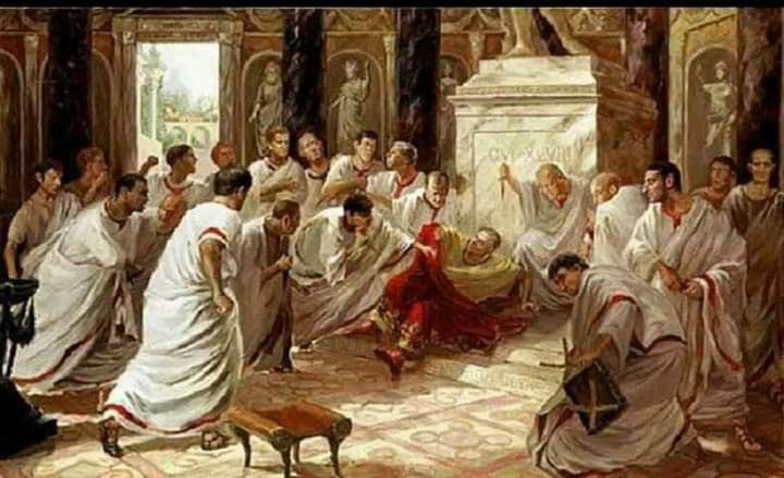 كانت لحظة عصيبة وصعبة حين خانه كل من وثق بهم يوما واجتمعوا وأتفقوا جميعا أن يقتلوه .. ذلك الاجتماع حين انهال الكل عليه بالطعنات .. وقيصر ما زال واقفا لم يسقط رغم كل الطعنات في جسده حتى رأى صديق عمره بروتوس