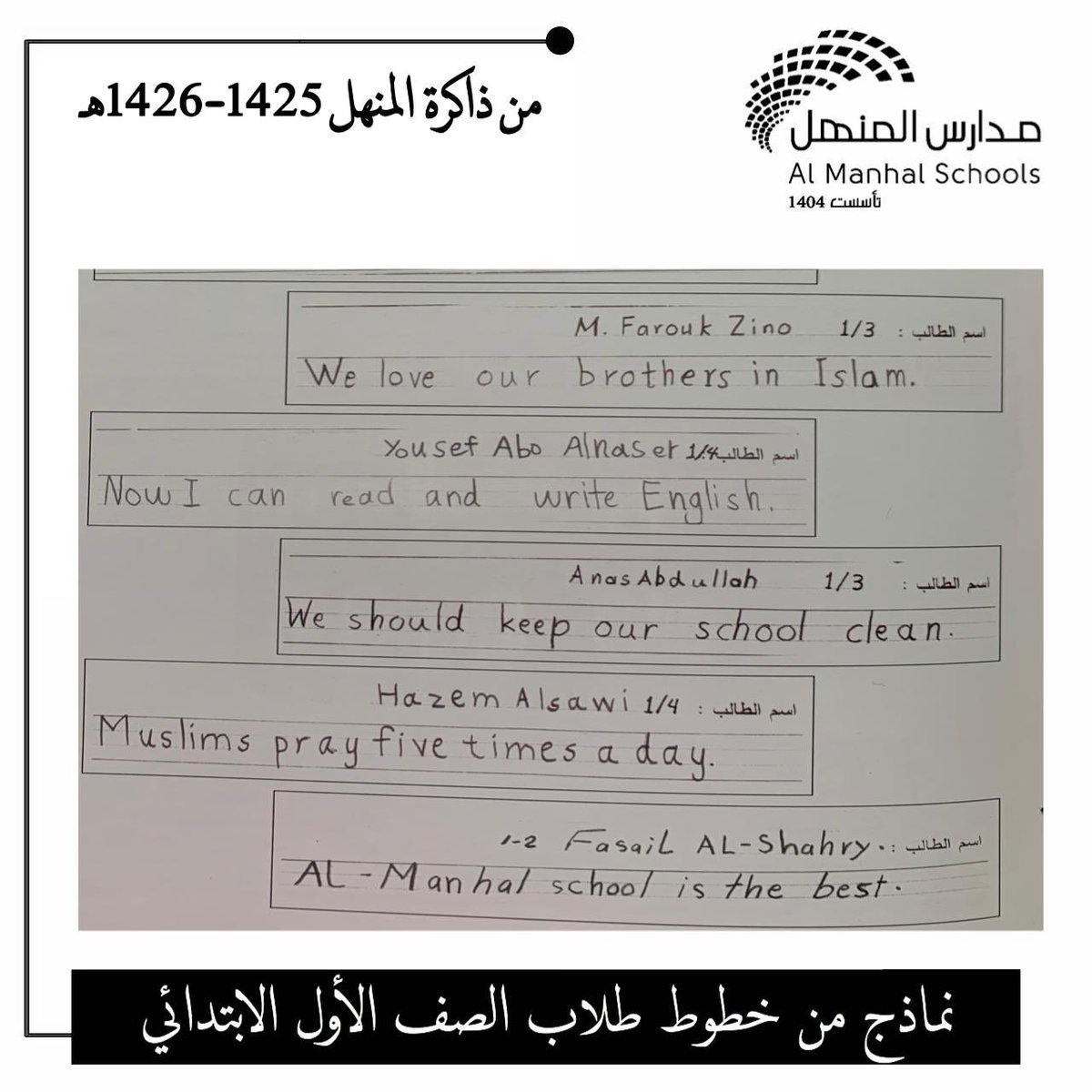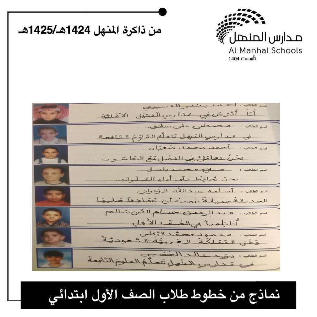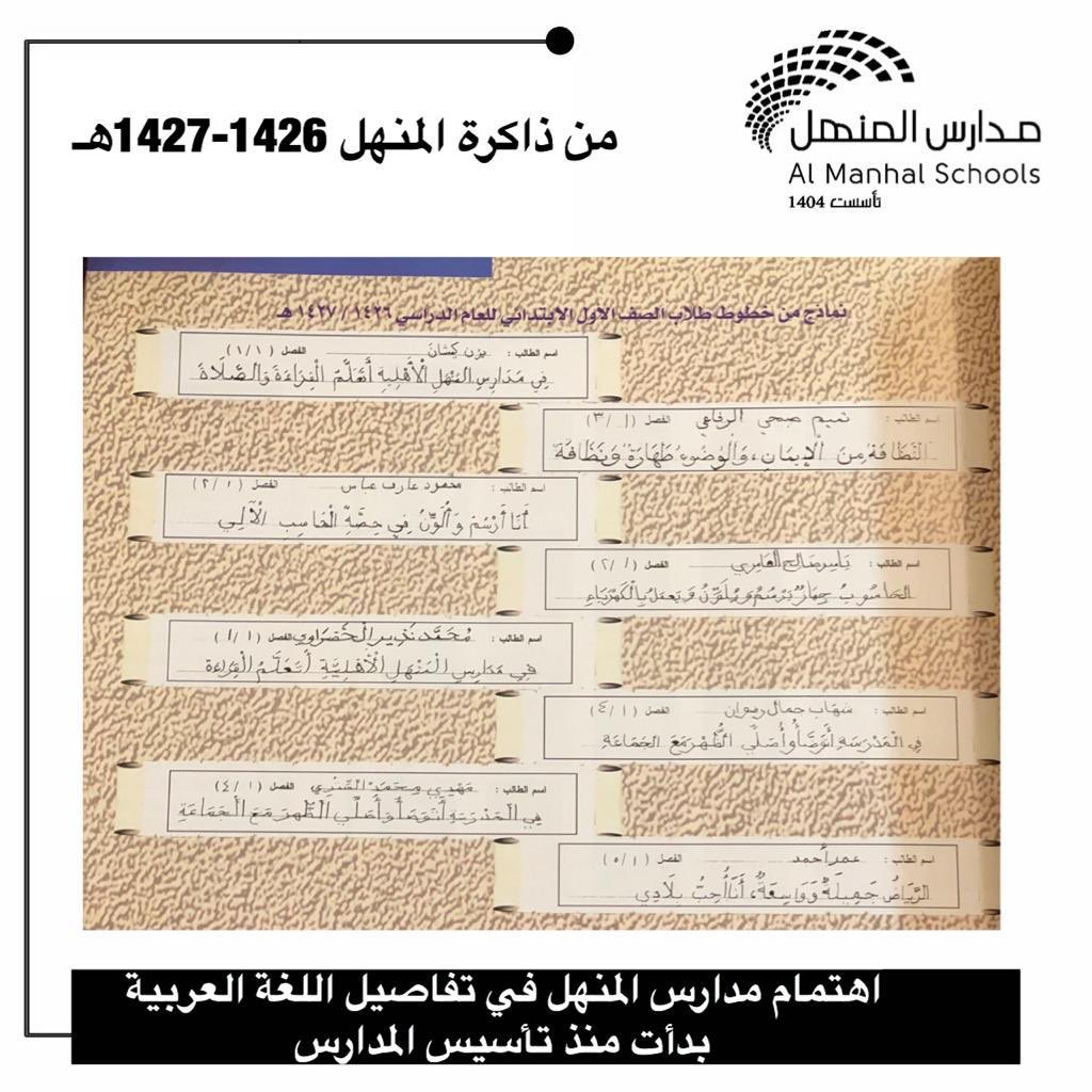 اهتمام مدارس المنهل في تفاصيل اللغة العربية بدأت منذ التأسيس،،، جانب من خطوط ابنائنا الطلبة بالصف الأول ابتدائي