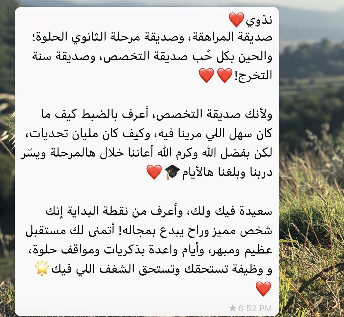 هاليومين جالسة اعيش حالة تأمّل لكل أحداث الخمس سنوات اللي راحت، بكل أيامها ومواقفها، بكل الأشخاص اللي التقيت فيهم بالجامعة ..