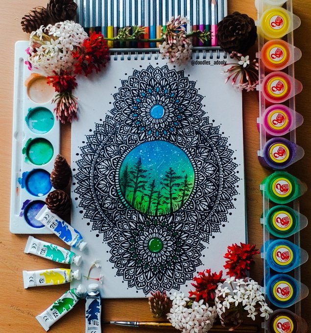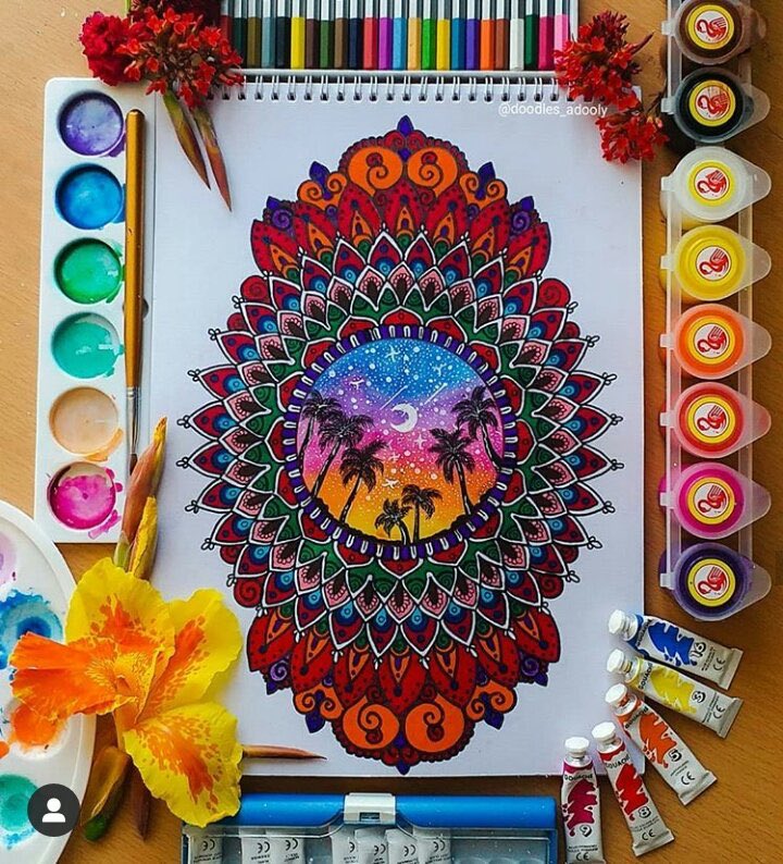رغم انه لايوجد اى فراغ للرسم الا انى يخلق وقت للرسم ، احبب فن الماندلا ووجد فيه شغفى وابتدا فعليا فى 2017 والى الان وصل للمرحلة هذى من الفن الجميل 💖