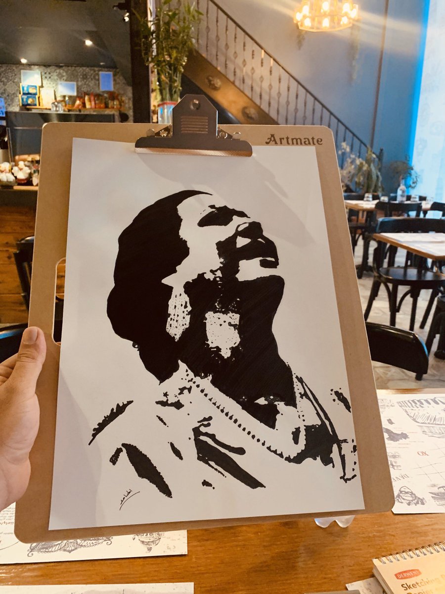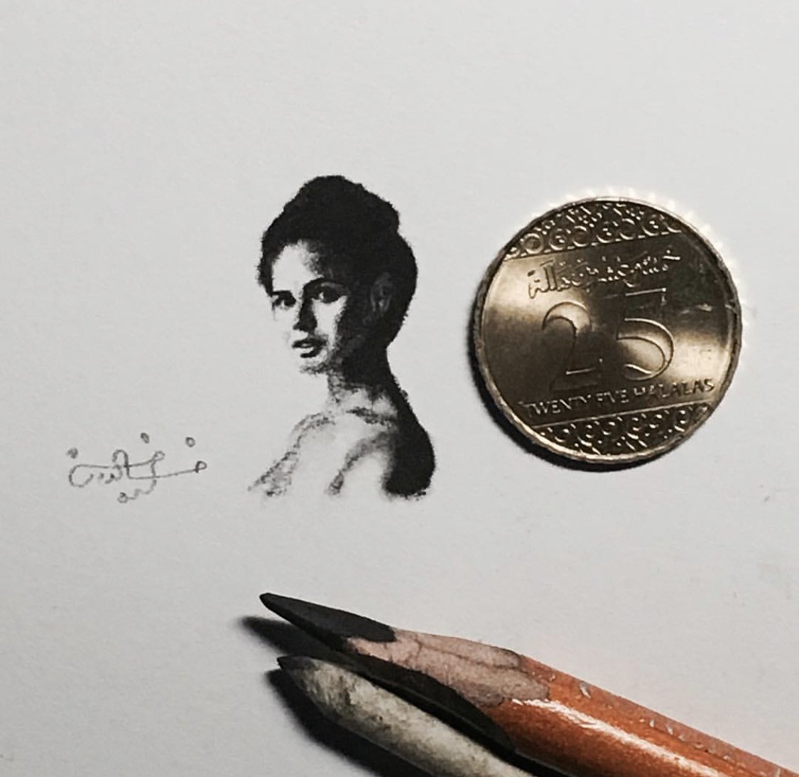 فنانة تحدت ضعف الأعصاب والرعشه ، كاتت اول من رسم الفنانين على الة العود,تميزت بأنها ترسم بأقل الامكانيات والادوات.
