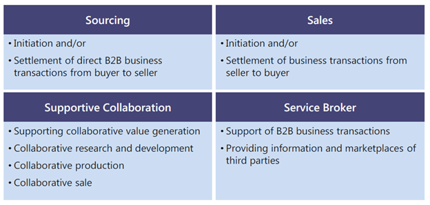 الجانب الآخر من نماذج العمل الرقمي هو نموذج الأعمال إلى الأعمال (#B2B) ويغطي هذا النموذج 4 محاور أساسية وهي: