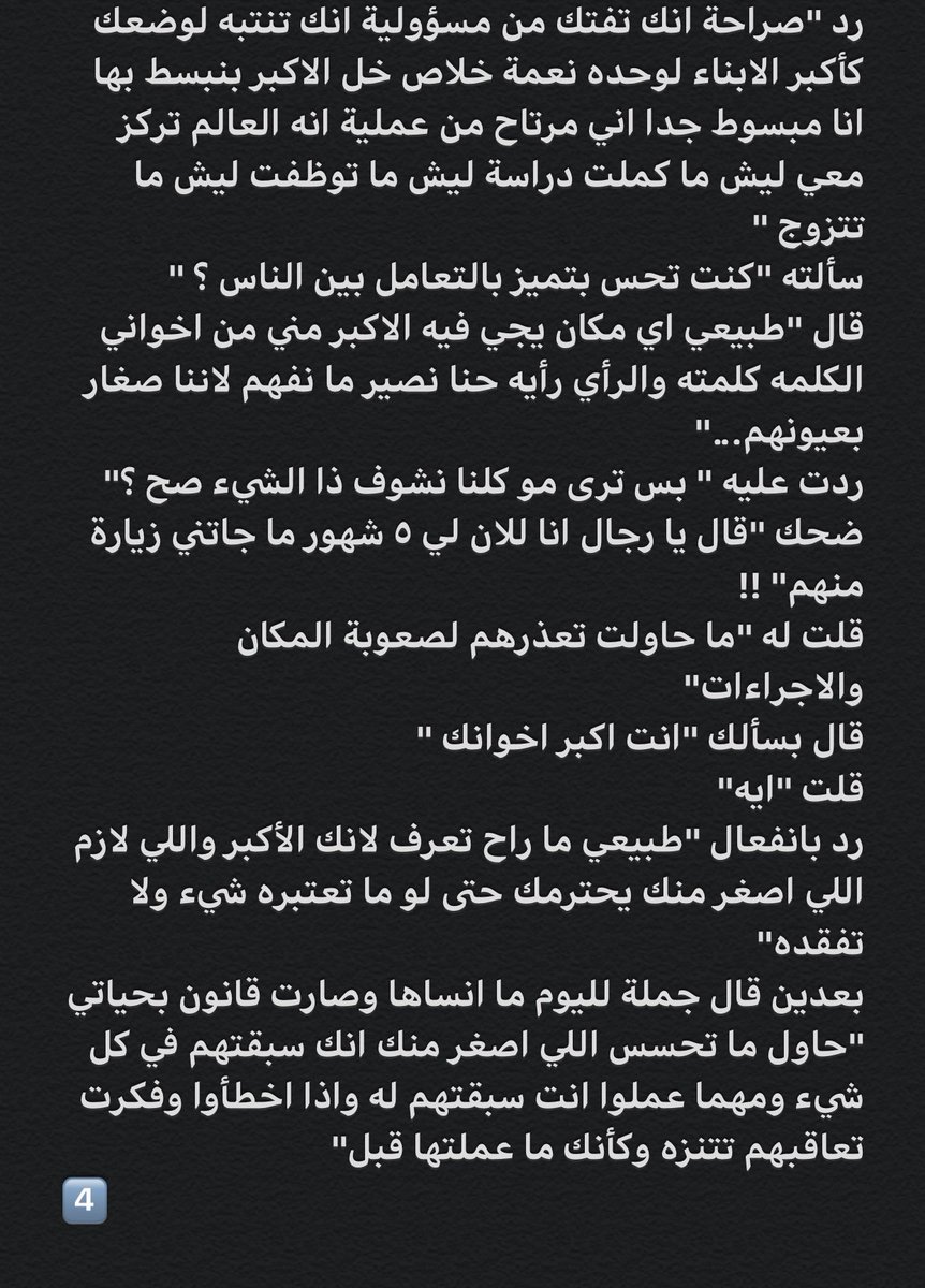 بس لما بدأ يتكلم عن وضعه او لما وصف نفسه بالبداية انه ثالث اخوانه وبعد كذا وضحها بمشاعر ان وجود الكبير في مكان انا موجود فيه في مجتمعي المصغر يلغيني