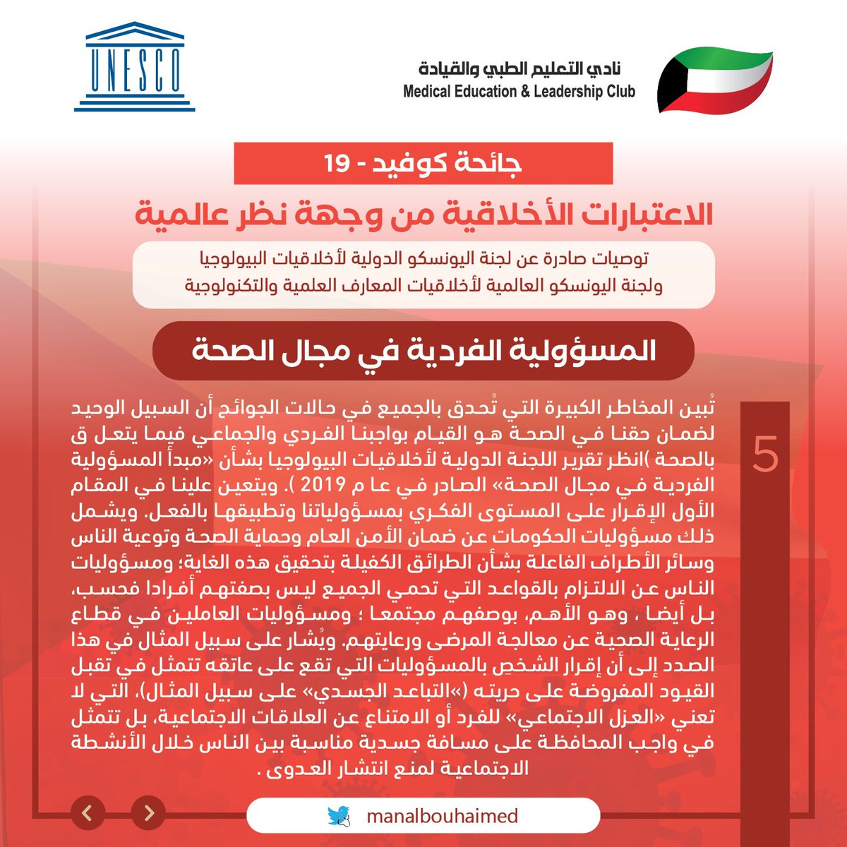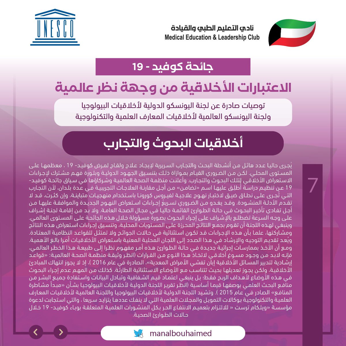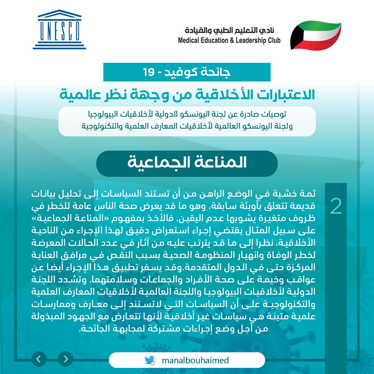 " من خبرتي باليونسكو" مجموعة من التغريدات حول البيان الصادر عن اللجنة الدولية لأخلاقيات البيولوجيا واللجنة العالمية لأخلاقيات المعارف العلمية والتكنولوجية باليونسكو بشأن الإعتبارات الأخلاقية العالمية للتعامل مع جائحة كوفيد -19