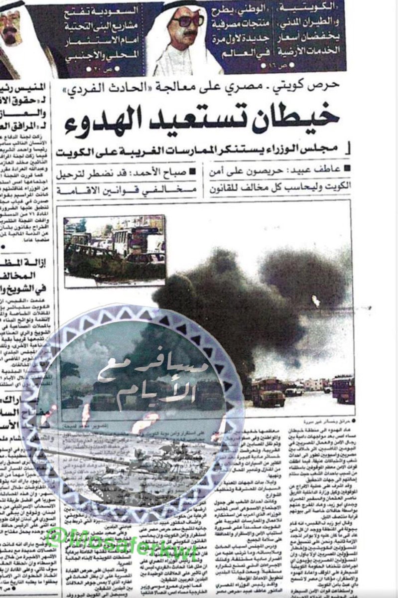 ساذكر قصه وتفاصيل الاحداث التي جرت عام ١٩٩٩ في منطقة خيطان من قبل الوافدين المصريين ومافعلوه من اعتداء على رجال الامن وحصار المنطقه ل ثلاث ايام متواصله ، واشكر جريدة القبس على ارشيف الصور ..