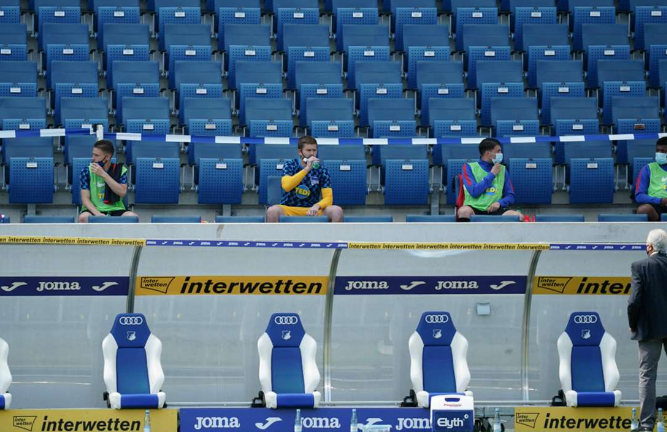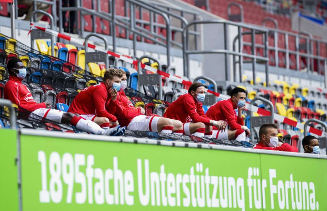 نجوم فريق دوسلدورف في المدرجات بدلًا من مقاعد الاحتياط للحفاظ على المسافات بينهم🦺😷