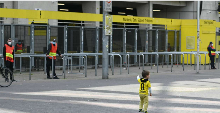 مداخل المدرجات فارغة إلا من عدد من رجال الأمن وطفل صغير يرتدي قميص بوروسيا دورتموند🟡😥