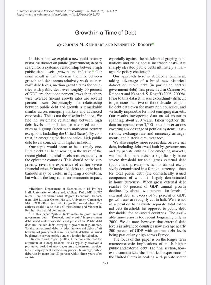 كانت الورقة منذ نشرها محطّ اهتمام واسع.. وتم استخدام نتائجها من قبل الكثير من السياسيين وفي المناظرات والتعليقات التلفزيونية لتبرير خطوات التقشف التي انتهجتها بعض الحكومات أعقاب الأزمة المالية ٢٠٠٨م..