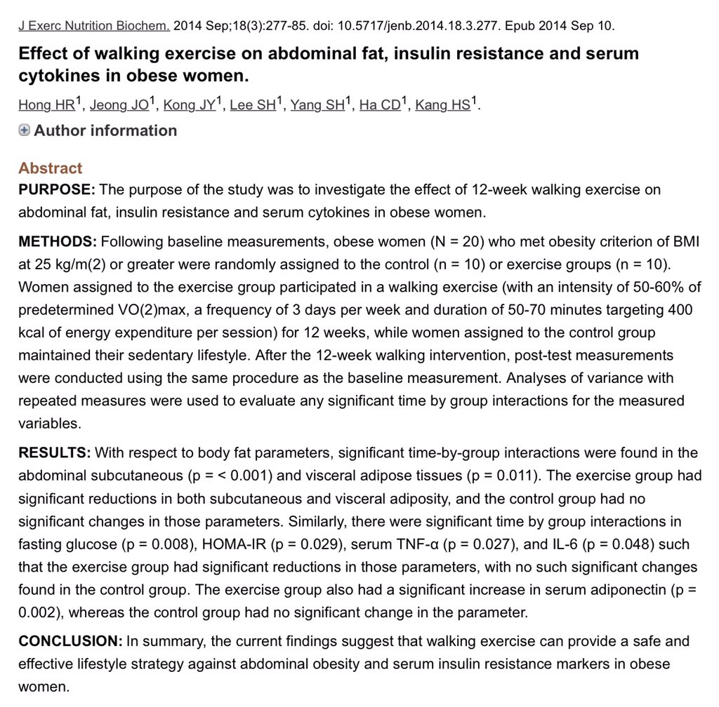 * كذلك وجدت دراسة أن المشي لمدة 50-70 دقيقة 3 مرات في الأسبوع يقلل من الدهون في الجسم ومحيط الخصر بمتوسط ​​1.5٪ و 2.8 سم، على التوالي