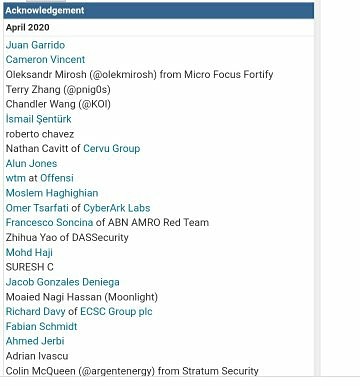 حيث قالت: "يسر مركز الإستجابة الأمنية لـ مايكروسوفت (MSRC)، التعريف بباحثي الأمن الذين ساعدوا في جعل خدمات "Microsoft" عبر الإنترنت أكثر أماناً من خلال العثور على الثغرات الأمنية والإبلاغ عنها".
