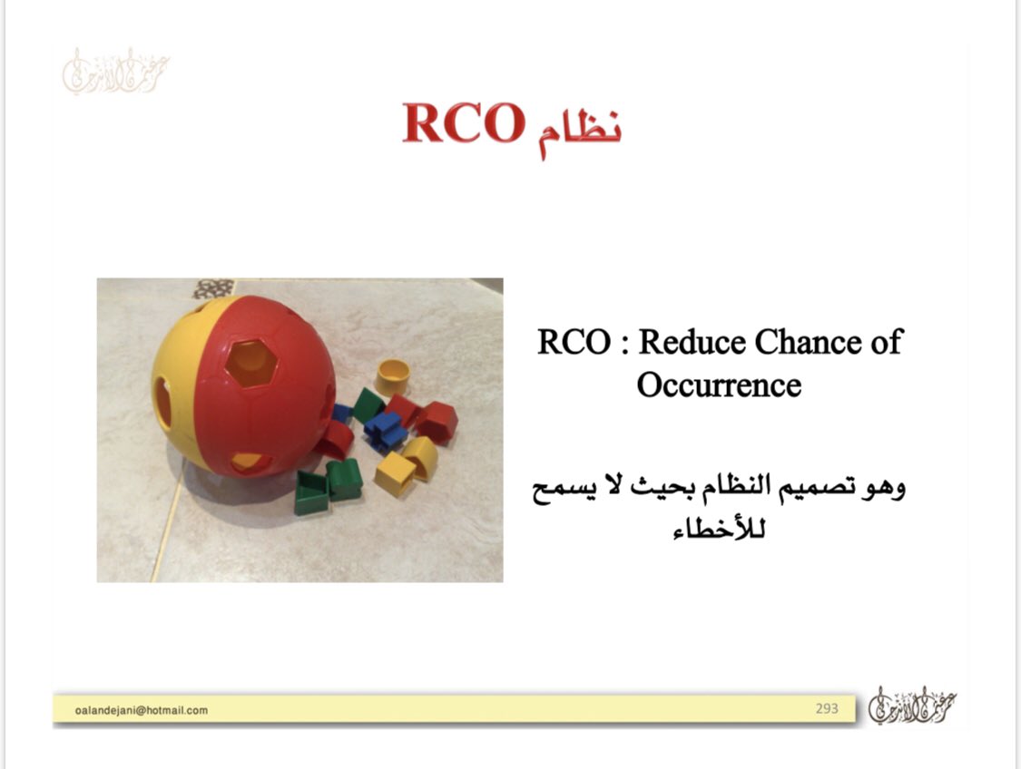 نظام #RCO اختصار لكلمة Reduce Chance of Occurrence أو تقليل فرص حدوث المشكلة بمعنى تصميم نظام لا يسمح بحدوث المشكلات أو الأخطاء